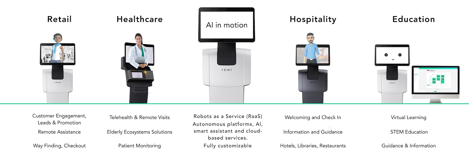 temi is a multinational robotics company that specializes in Robot as a Service solutions (RaaS), autonomous platforms, Al, smart assistant and cloud-based services.